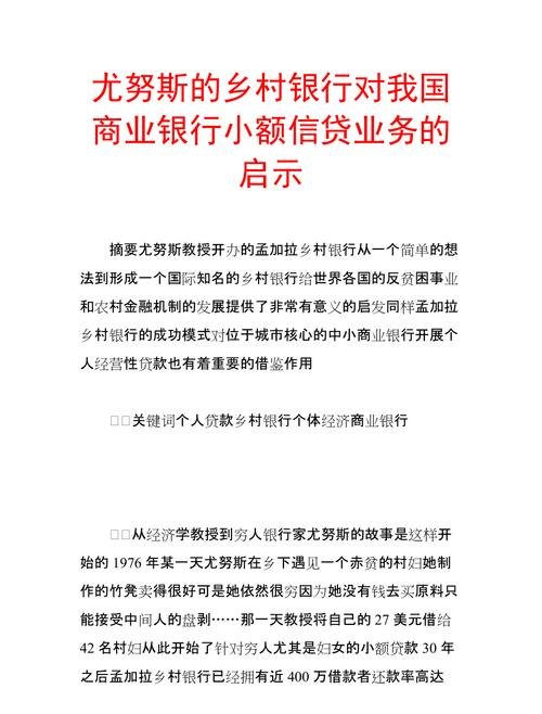 在当今竞争激烈的商业环境中,企业的发展离不开资金的支持,商业银行作为金融行业的重要组成部分,其贷款业务为企业提供了重要的资金来源,通过研究商业银行贷款业务,企业可以获得许多宝贵的启发,从而更好地规划和管理自身的财务状况,实现可持续发展,本文将探讨商业银行贷款业务对企业的一些重要启发。